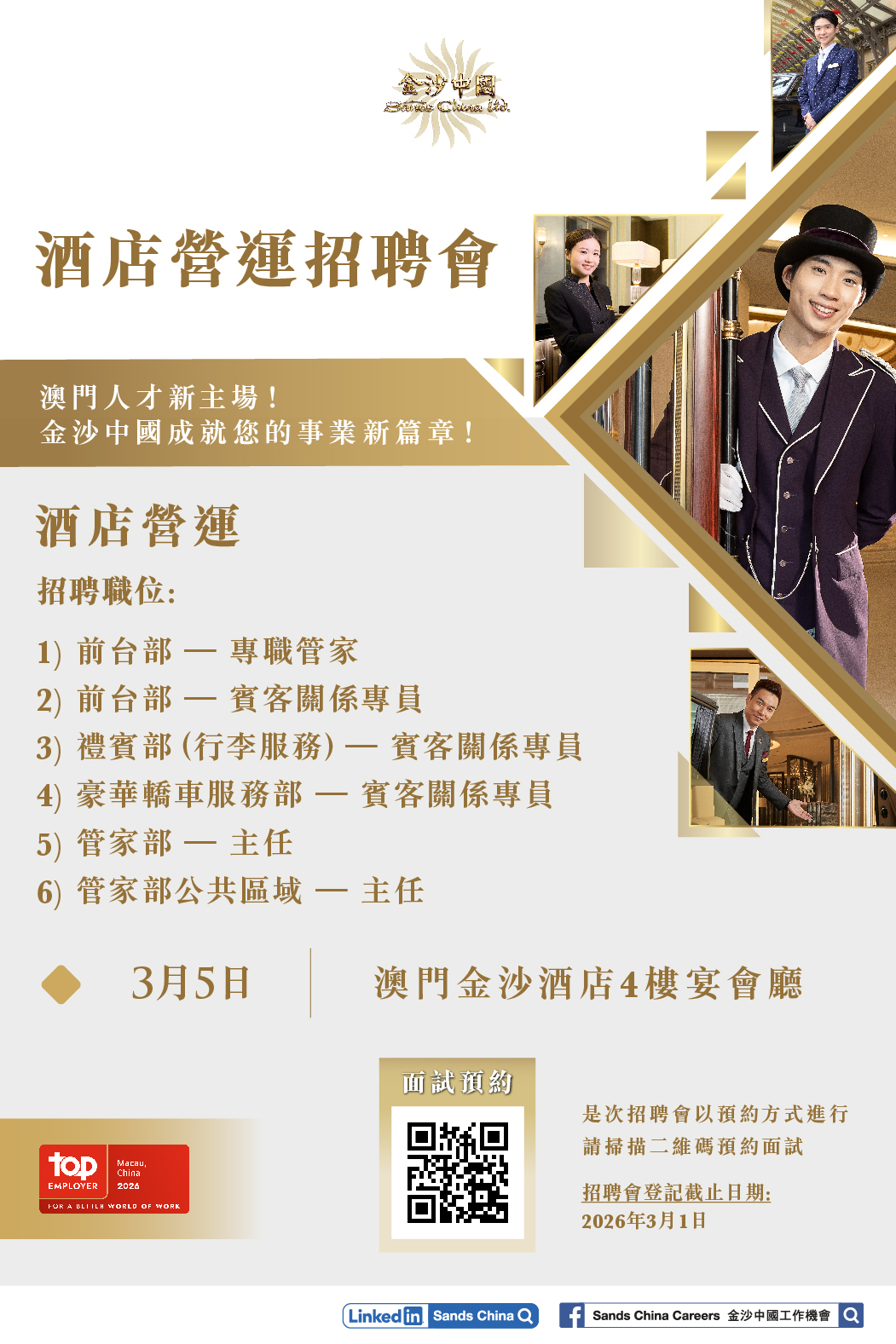 • 禮賓部 - 行李服務 - 賓客關係專員