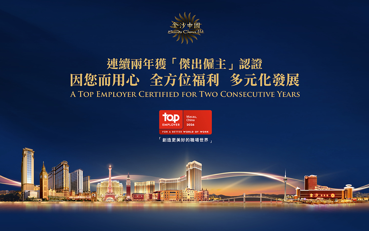金沙中國植根澳門逾廿載,擁有超過27,000名員工,是澳門最大的綜合旅遊休閒企業及澳門最大的私營僱主。公司一直積極發揮多元業務優勢,為澳門在會議展覽、酒店餐飲、娛樂表演及零售業務等提供超過1,400個多元化工種,讓您有無限的事業發展機會。
