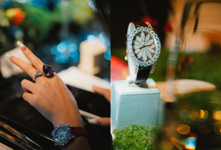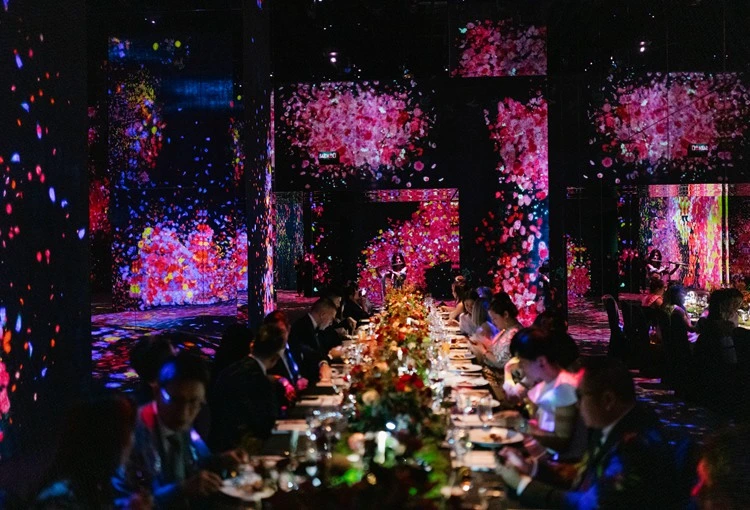 晚宴上,貴賓們用膳的華麗宴桌都裝飾着蕭邦的奪目珠寶、鮮花和teamLab巧妙的數位花卉投影,將空間籠罩在色彩和華美視覺效果之中。賓客們享用特別為活動度身訂造的華麗饗宴時,更被多變、靈動的光效包圍;同場更有長笛手Zoe Lai 的現場演奏,及在茱莉亞學院訓練有素的小提琴家DJ Olivia Dawn演奏的美妙旋律。