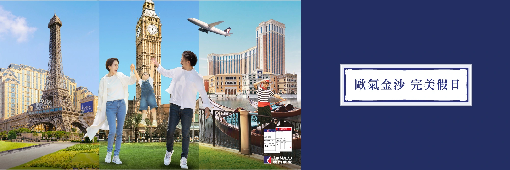 澳門金沙度假區推出嶄新澳門航空登機證禮遇! 憑登機證即可尊享澳門幣100元餐飲券及巴黎人主題精美行李帶以及其他豐富禮遇,助您在澳門金沙度假區輕鬆獲得至佳旅遊體驗!