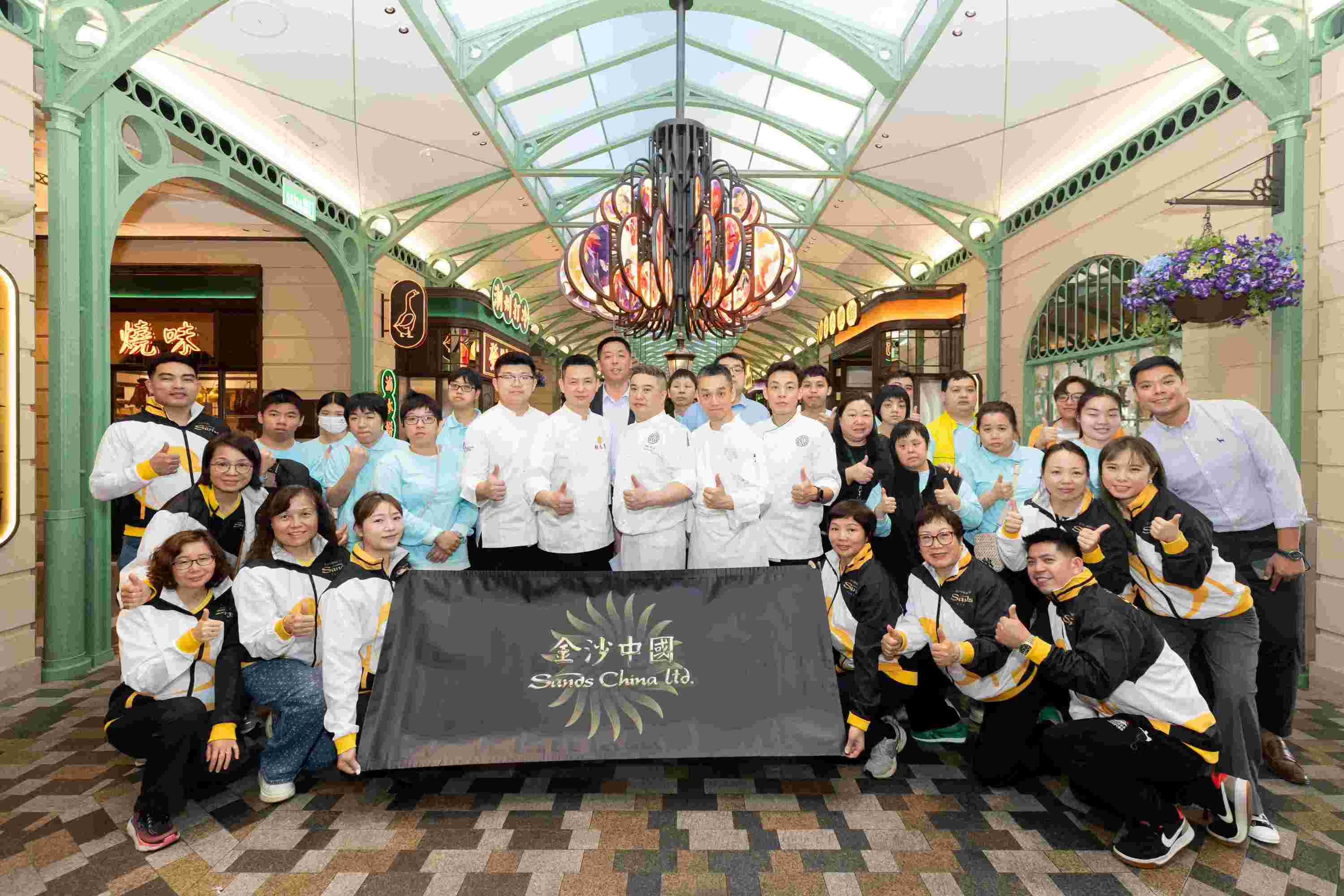 圖片說明: 金沙中國在倫敦人美食園舉辦廚藝交流活動,邀請了廚師團隊、客席廚師、澳門展智服務協會會員以及金沙中國關懷大使一同參與。